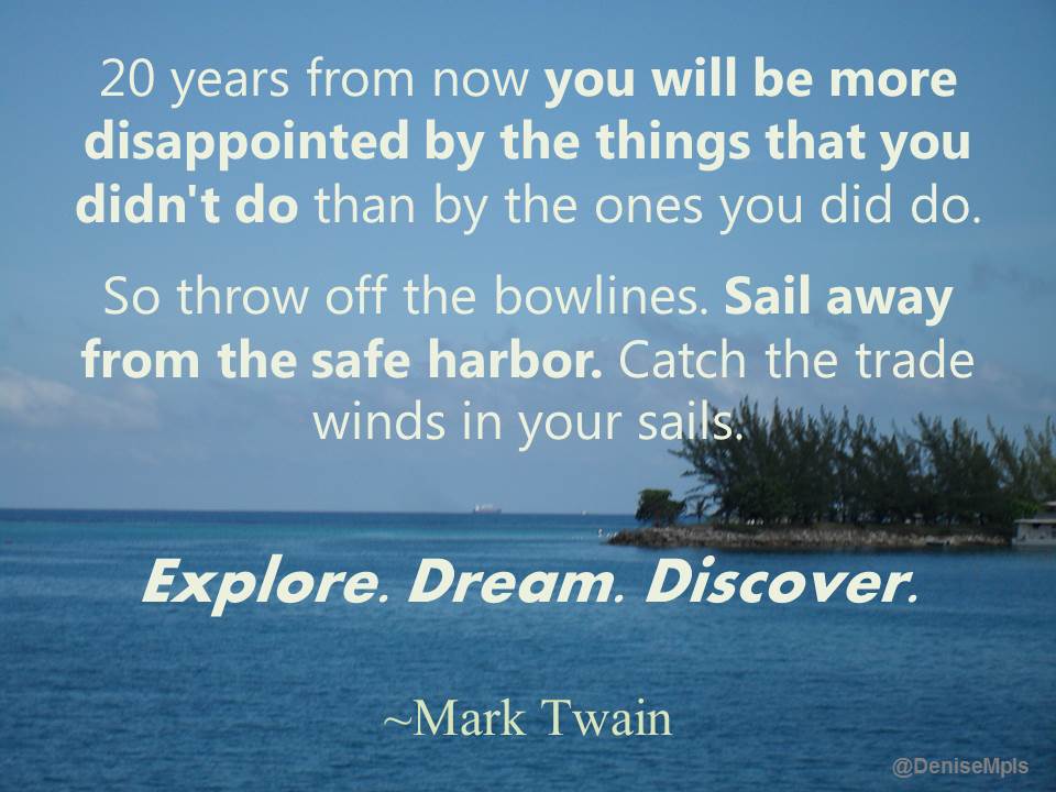 “Twenty years from now you will be more disappointed by the things that you didn’t do than by the ones you did do.”